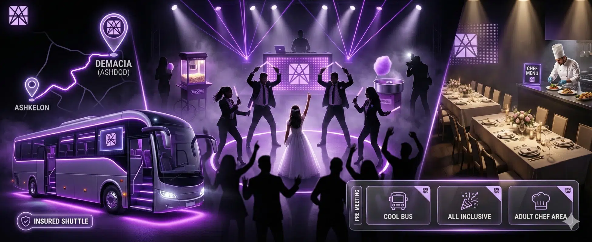 הסעה מאשקלון עם האוטובוסים המגניבים שמשלימים את החוויה, אז למה להתפשר כשאפשר לעשות בת מצווה בדימסיה.